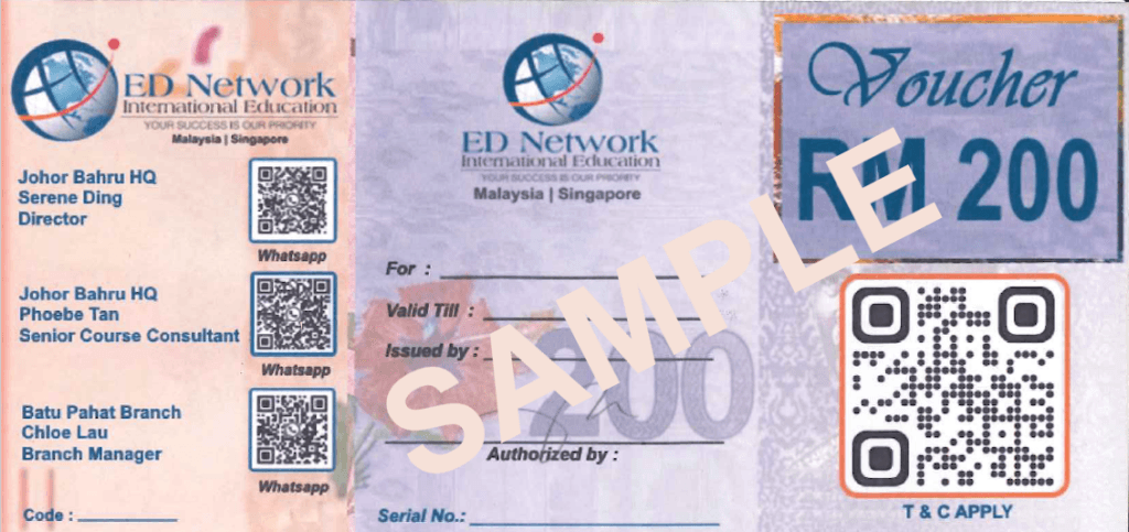 - Phoebe Tan (Senior Course Consultant) – +6011 1099 1488 – whatsapp (Johor Bahru HQ)